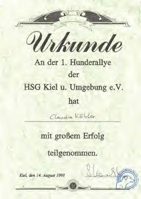 Ich wollte auch keinen Hundeplatz mehr, aber trotz allem habe ich dann in Kiel einen Verein gefunden, welcher einfach nur ein bisschen Spaß mit Hund haben wollte. Natürlich auch Unterordnung, aber vor allem Agility, Ralleys, Unternehmungen u.ä.